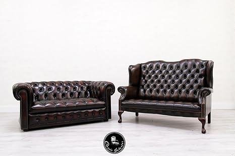 Chesterfield Sofa Garnitur Sessel Echtleder Couch Antik Oxblood