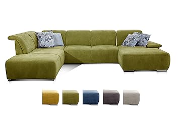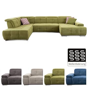 Cavadore Wohnlandschaft Mistrel Mit Longchair Rechts Und Ottomane Links Grosses Sofa In U Form Inkl Kopfteilfunktion 343 X 77 93 X 228 Grun