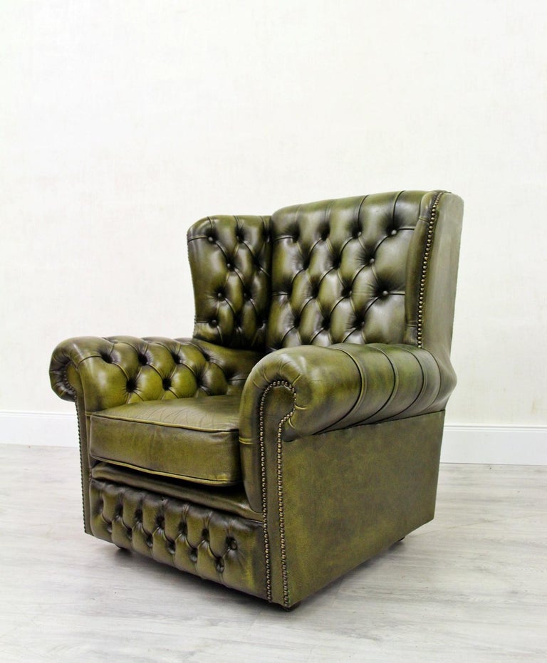 Details Zu Thomas Chippendale Style Green Leather Chesterfield Gainsborough Carver Armchair